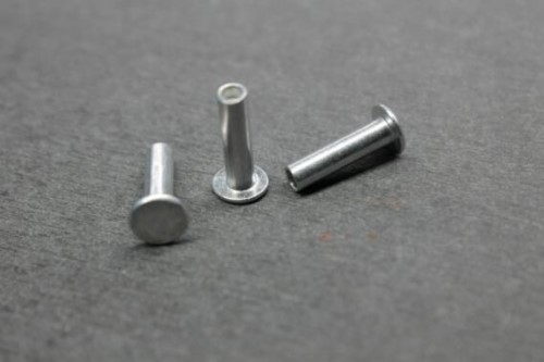 另外,還有對(duì)插鉚釘,比較特殊。分為兩部分,較粗的一段帶帽桿體中心有孔,與較細(xì)的另一段帶帽桿體是過(guò)盈配合。鉚接時(shí),將細(xì)桿打入粗桿即可。